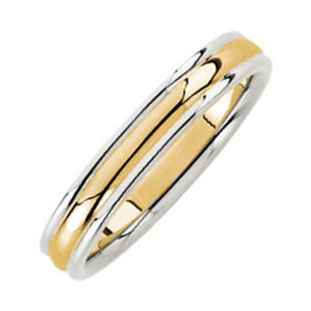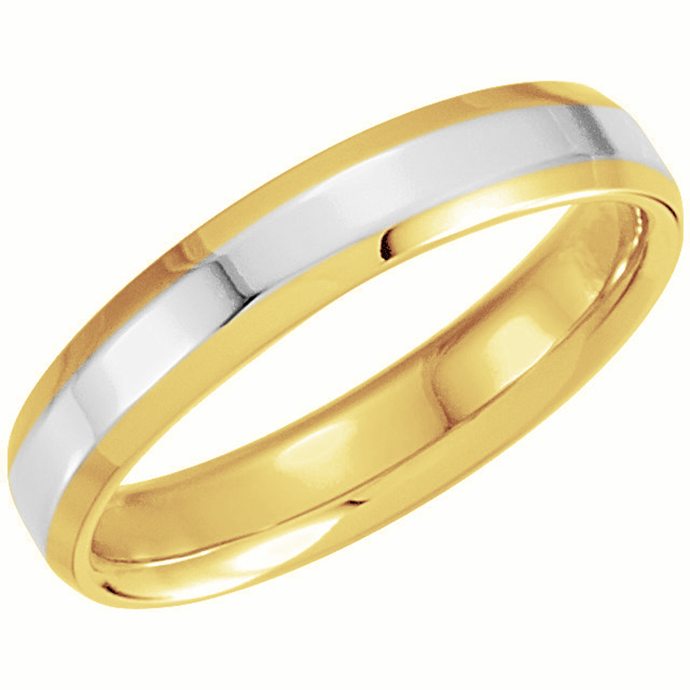 Tagged 14k yellow gold and white gold band, 2 tone comfort fit dome ring, 4 millimeter 2-tone ring, comfort fit bands, two-tone hypoallergenic ring, wedding rings for men and women