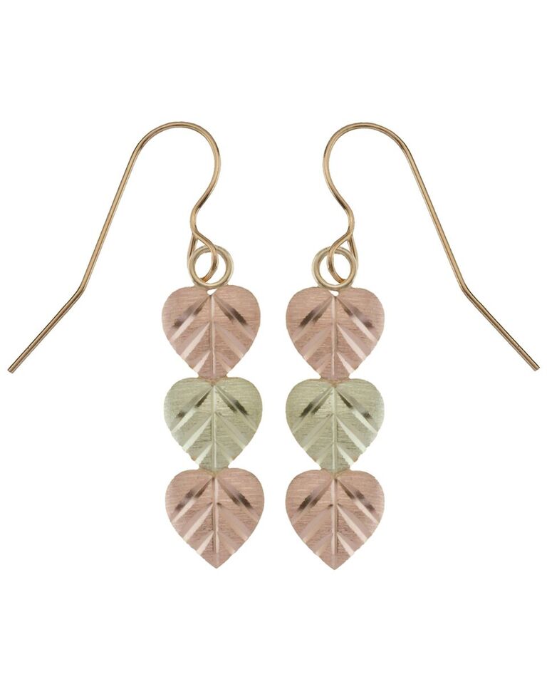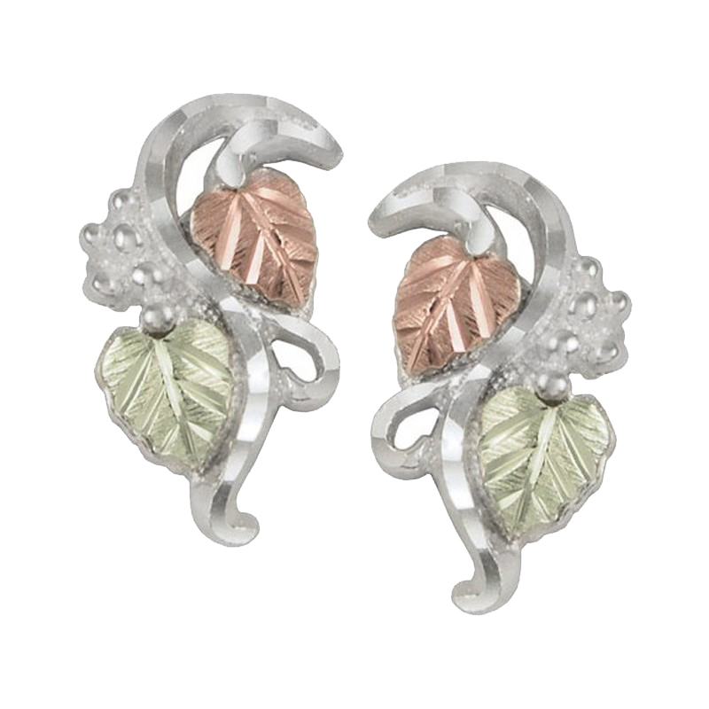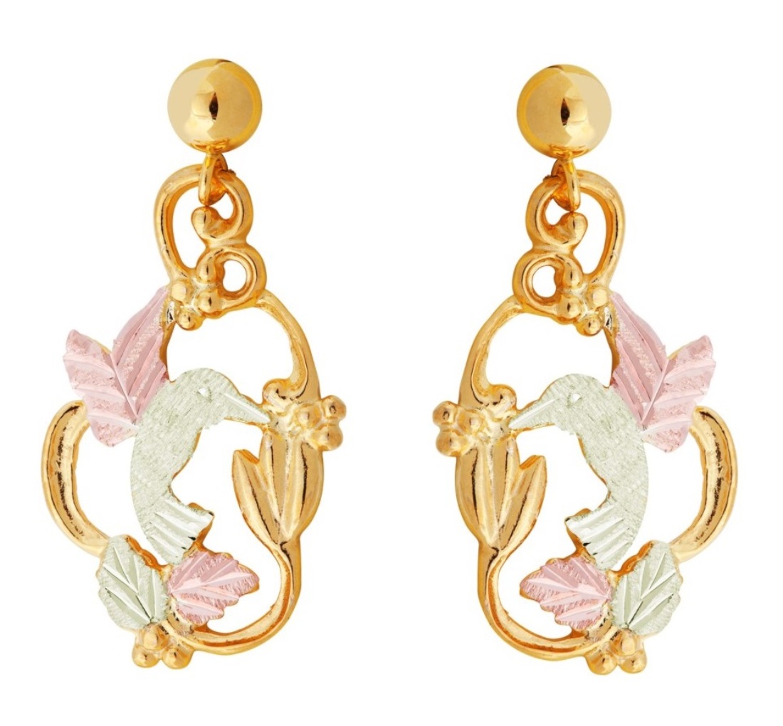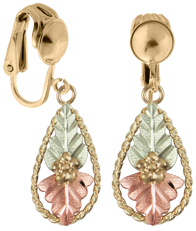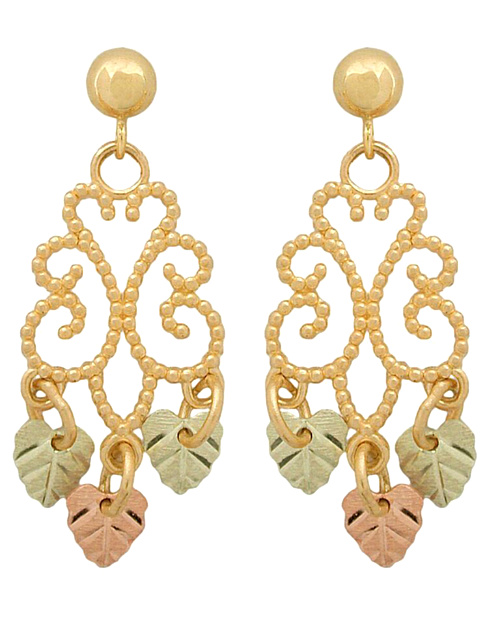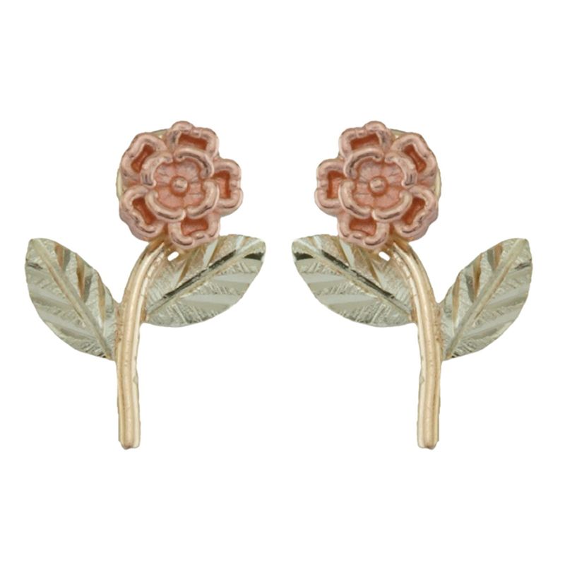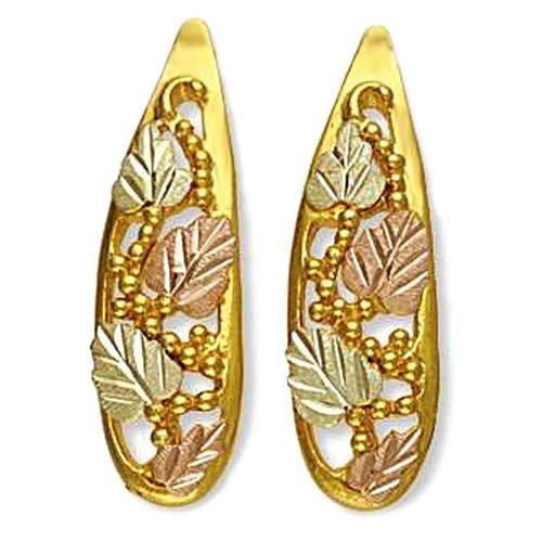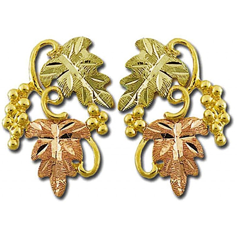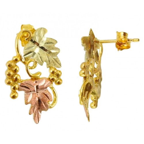 Black Hills Gold Earrings, 10k Yellow Gold, 12k Rose Gold, 12k Green Gold