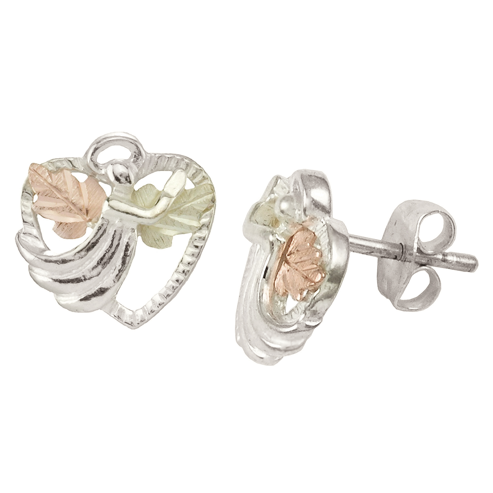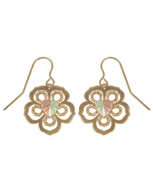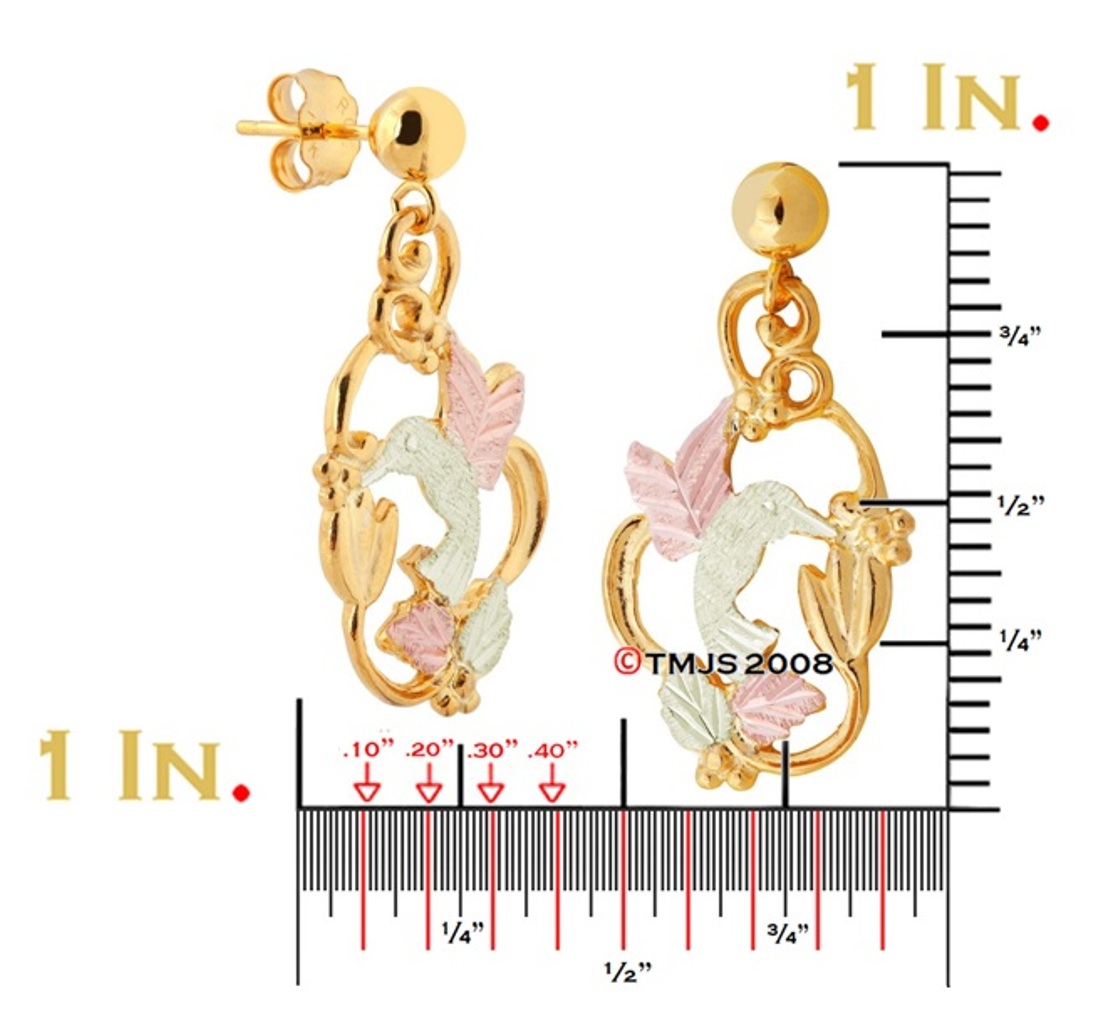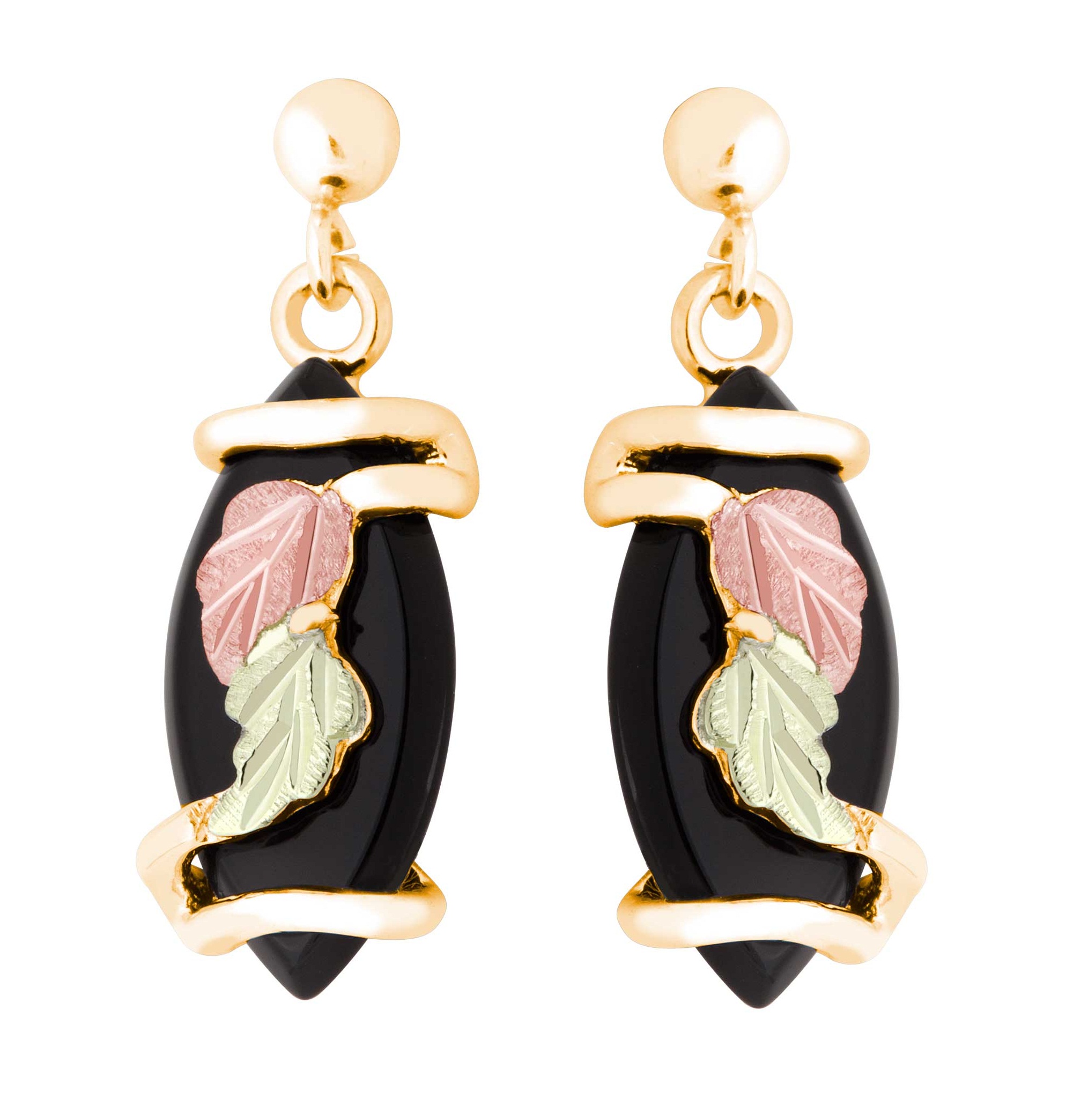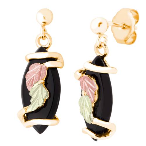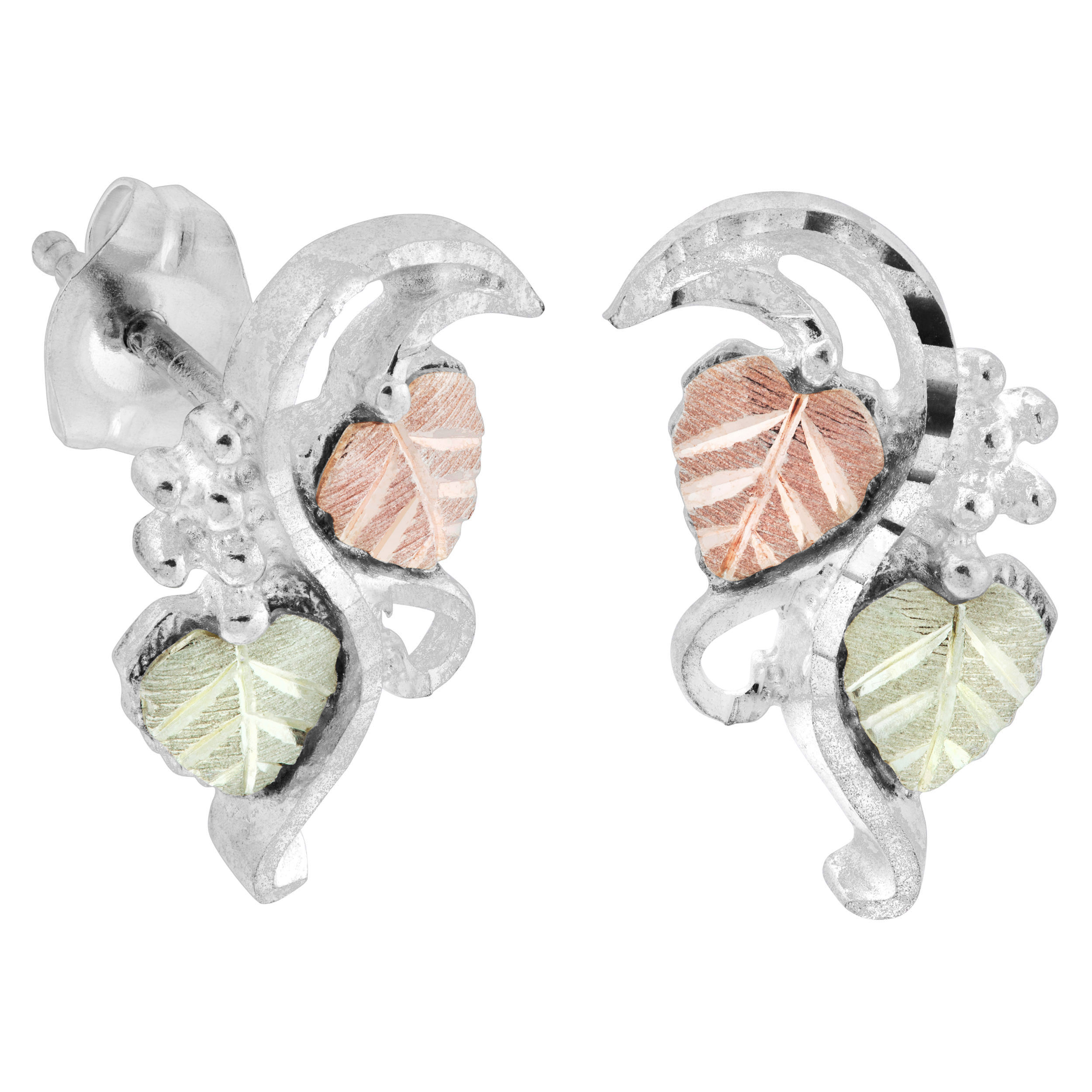 Black Hills Gold Earrings, 10k Yellow Gold, 12k Rose Gold, 12k Green Gold