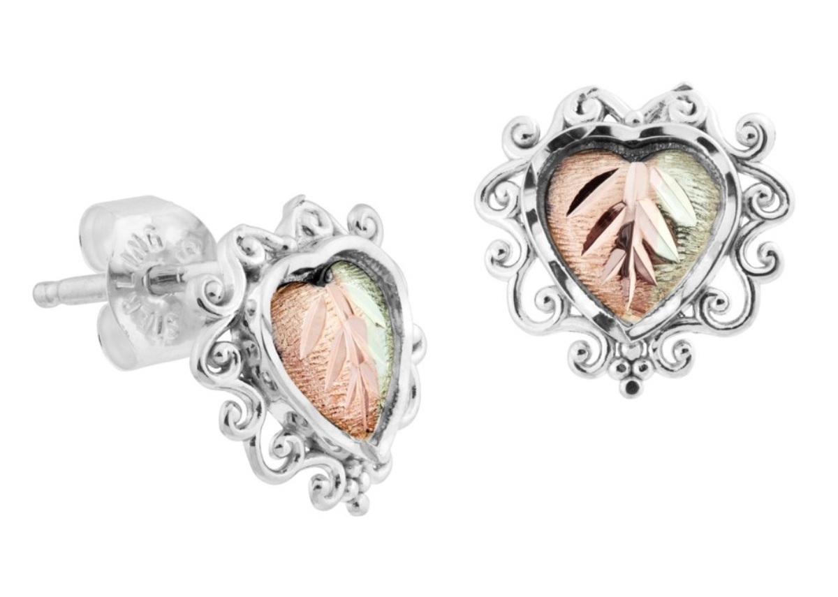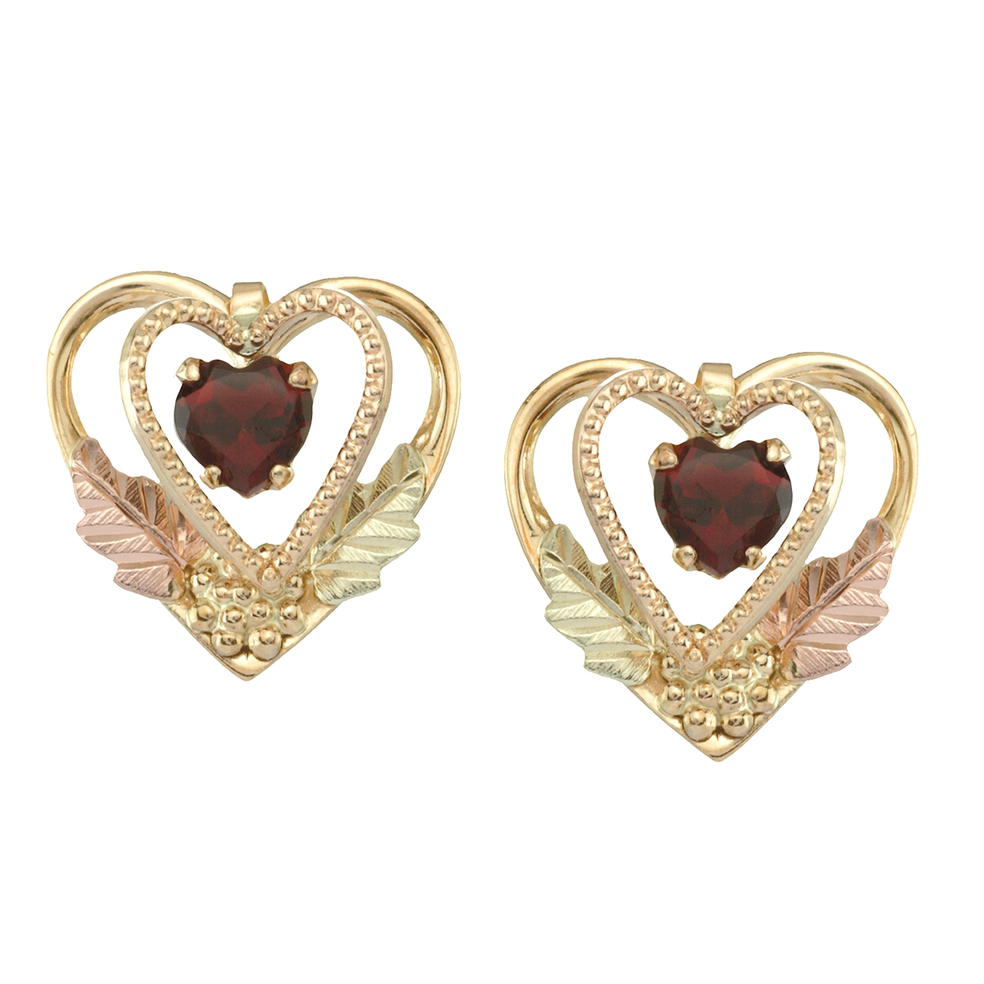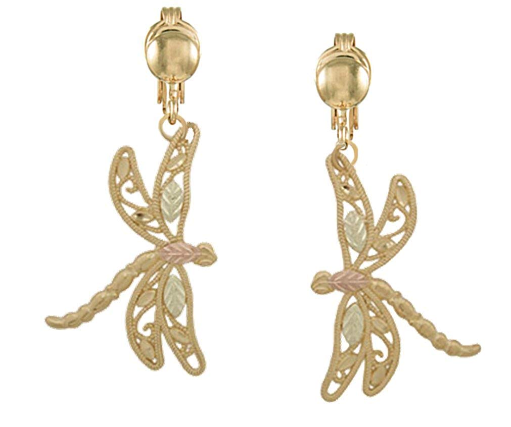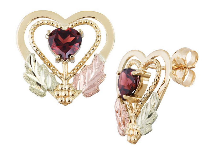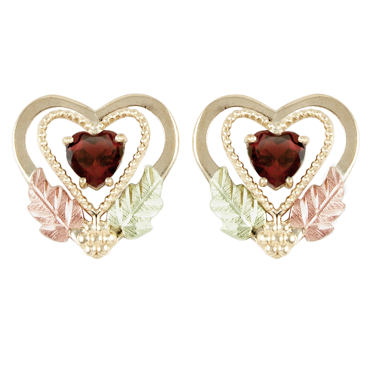 Black Hills Gold Earrings, 10k Yellow Gold, 12k Rose Gold, 12k Green Gold
