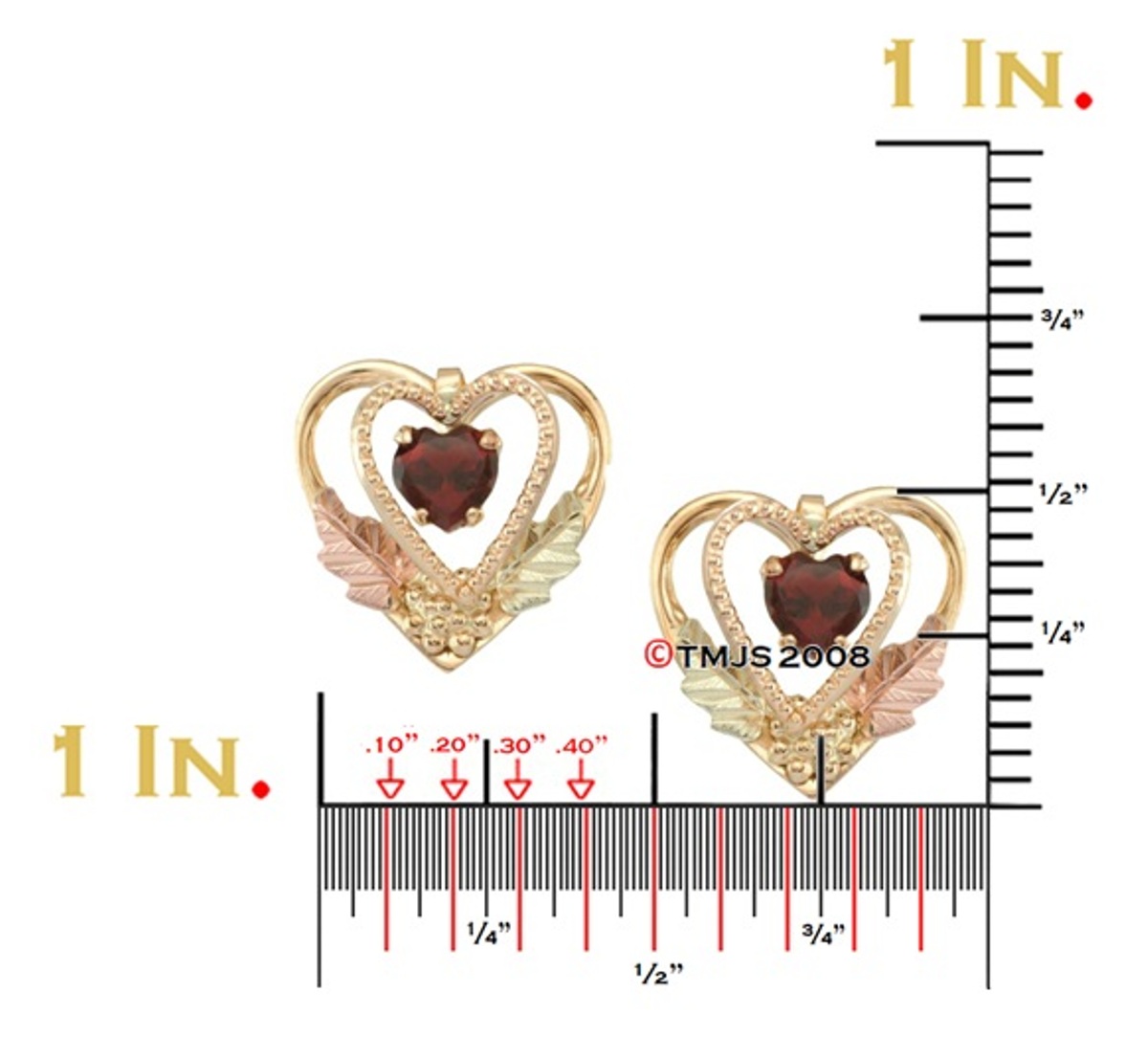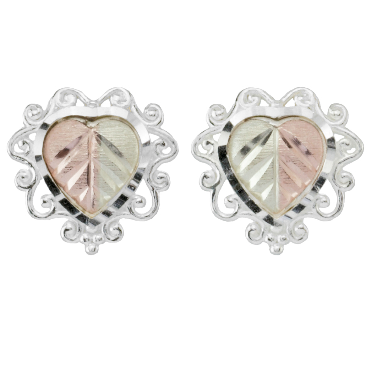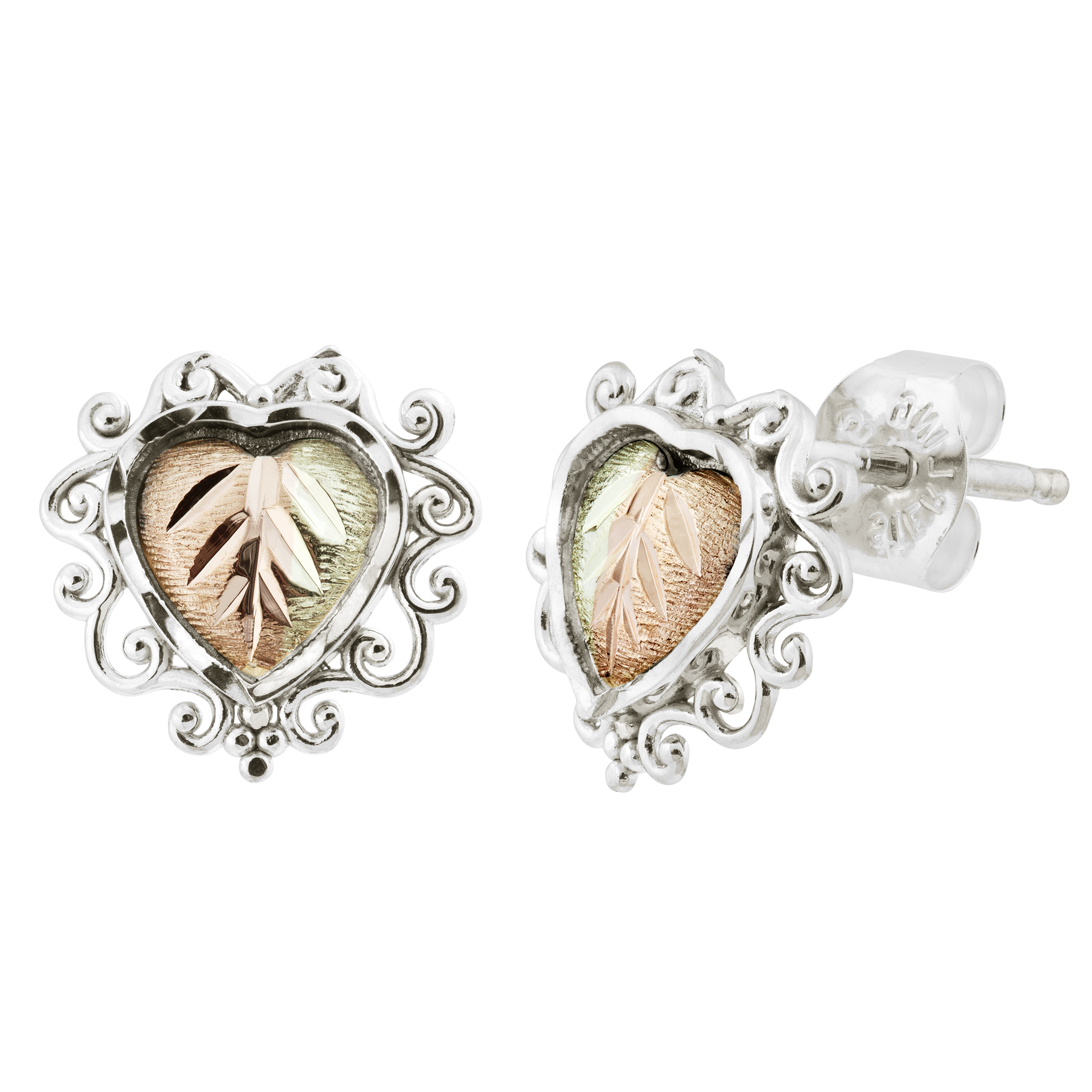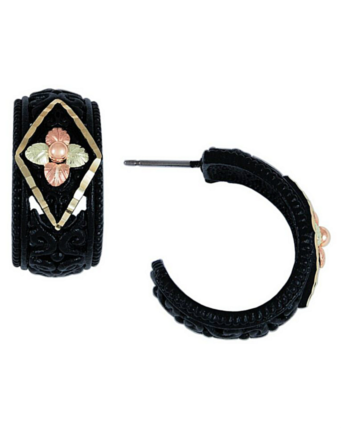Black Hills Gold Earrings, 10k Yellow Gold, 12k Rose Gold, 12k Green Gold