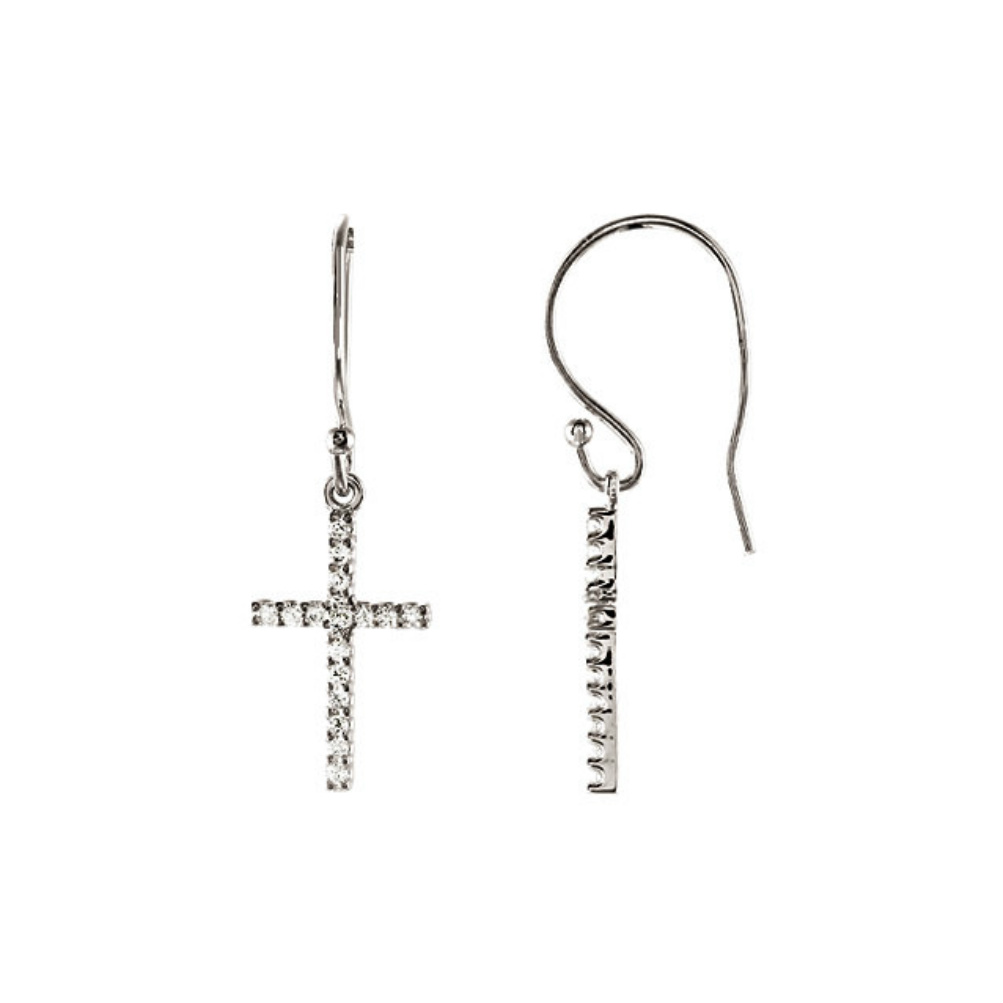 14k White Gold Diamond Petite Cross Earrings – R16600-1006