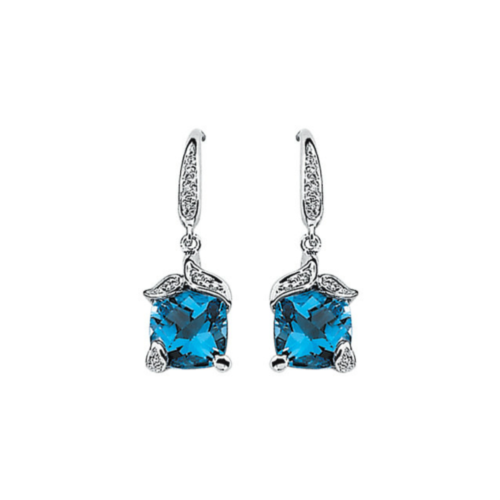 14k White Gold Swiss Blue Topaz and Diamond Earrings-65939-1006