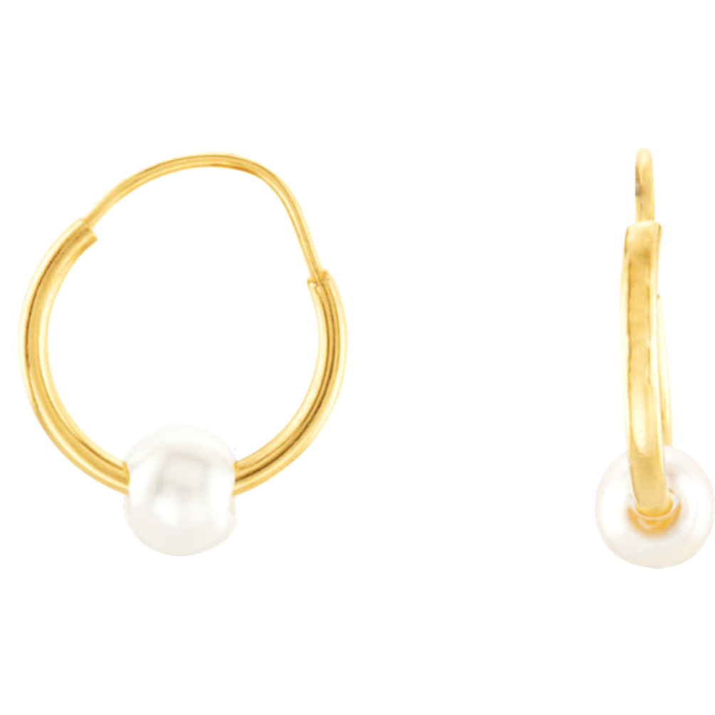 14k Yellow Gold and Pearl Hoop Childrens Earrings-19164-1006