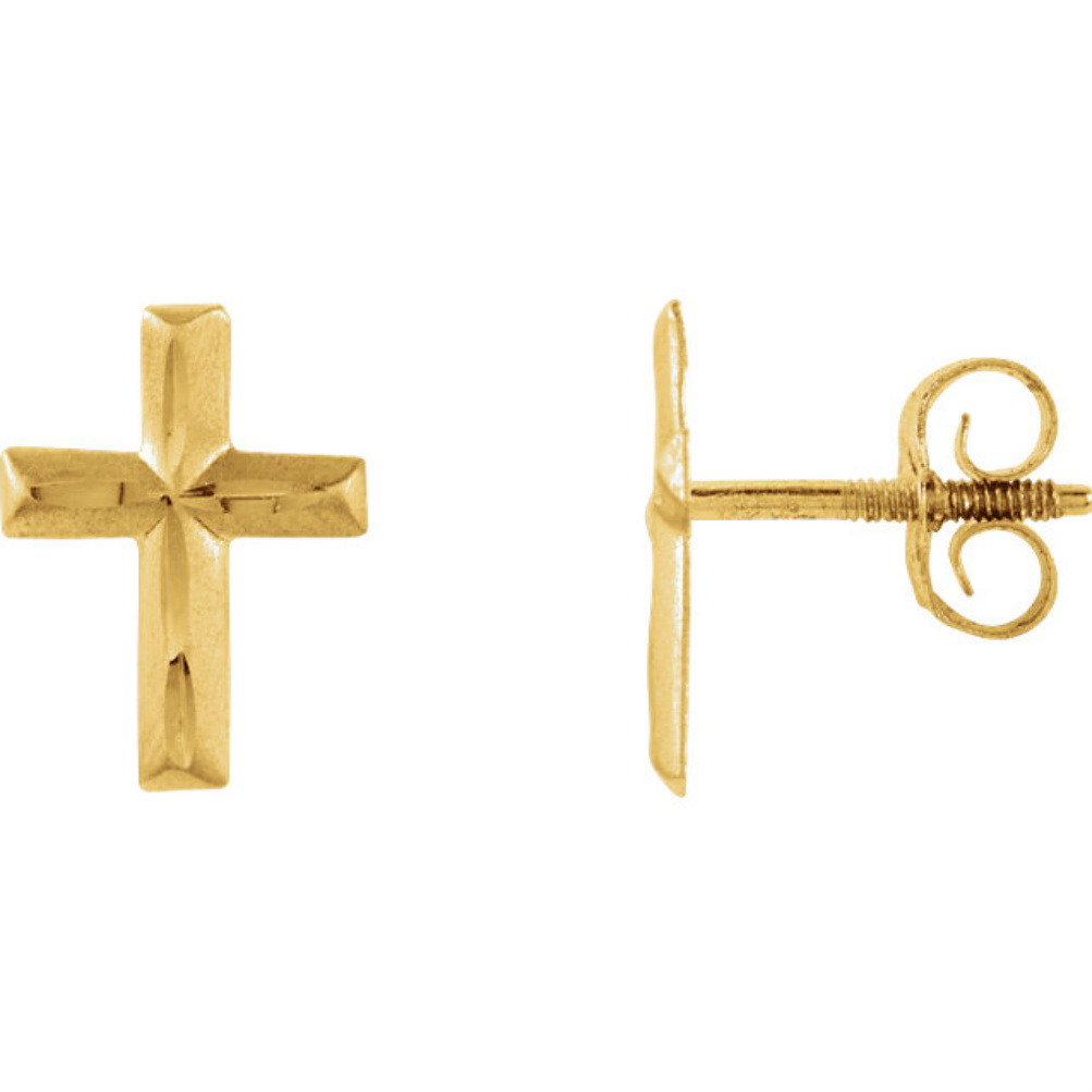 14k Yellow Gold Cross Childrens Earrings-19247-1006