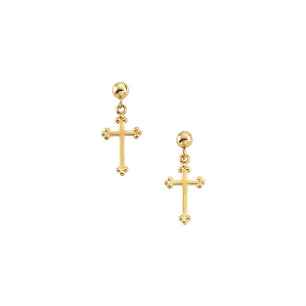 14k Yellow Gold Cross Earrings-R16536-1006