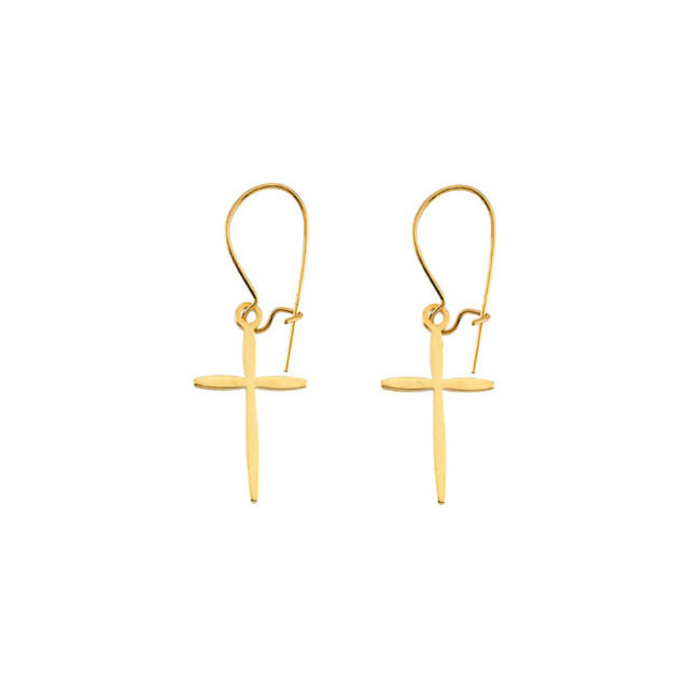 14k Yellow Gold Dangle Cross Earrings-R16514-1006