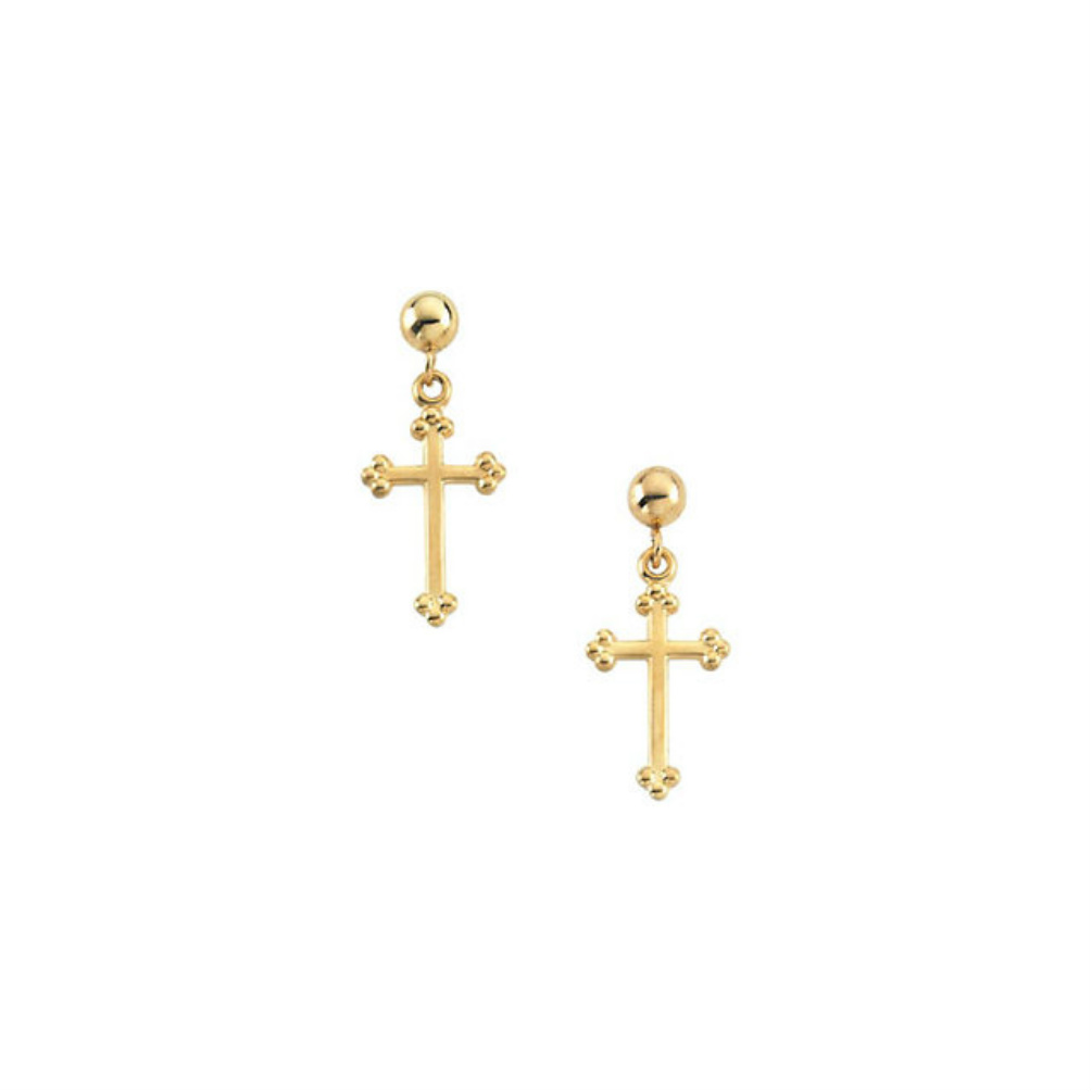14k Yellow Gold Dangle Cross Earrings-R16523-1006