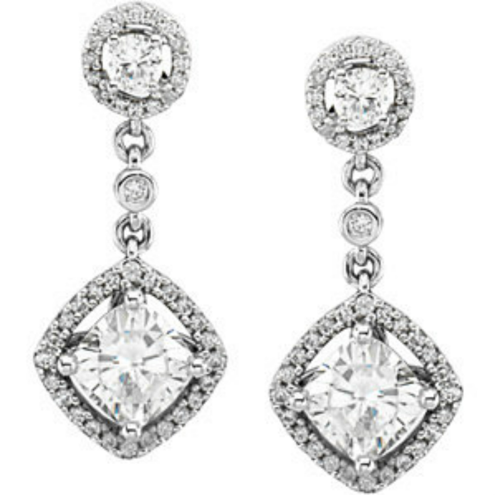 2.25 Cttw Charles & Colvard 14k White Gold Antique Square Moissanite and .45 Cttw Diamond Halo Earrings