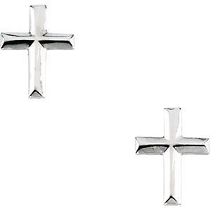 Childrens 14k White Gold Cross Earrings-19248-1006