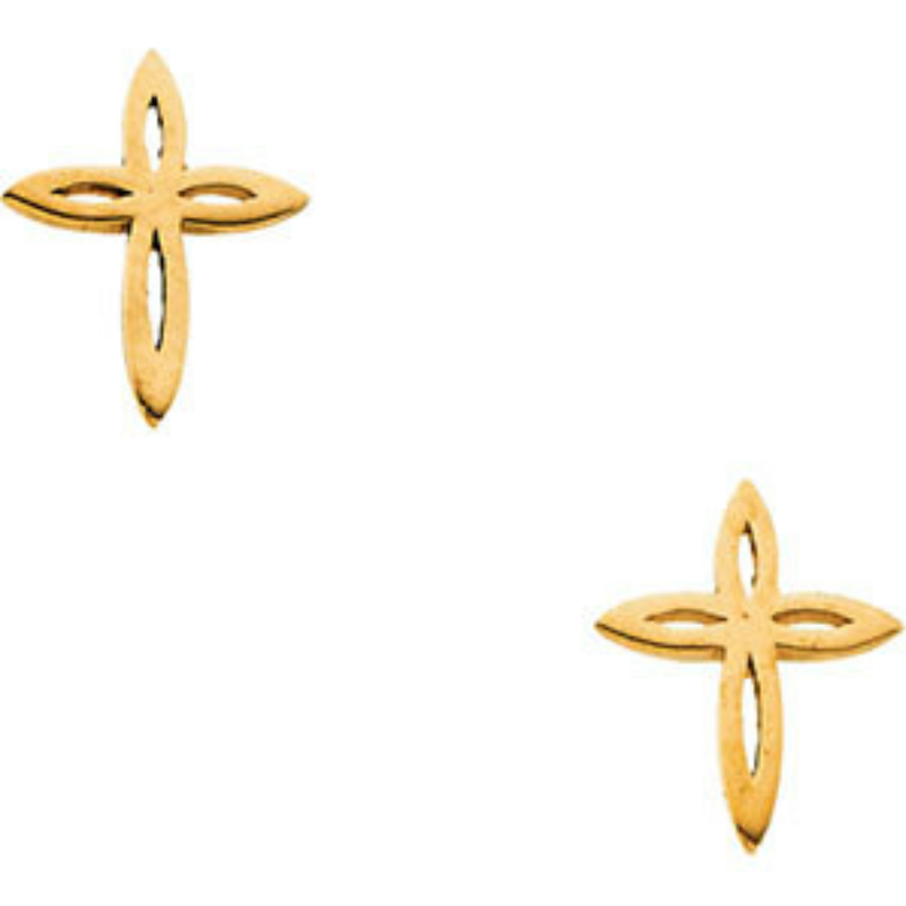 Childrens 14k Yellow Gold Open Star Cross Earrings-19231-1006