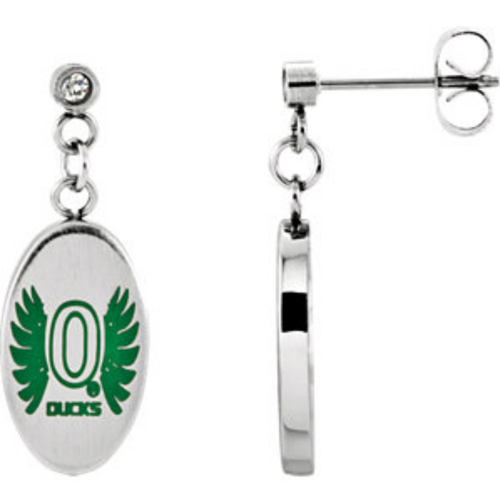 Womens Stainless Steel and CZ Oregon Ducks NCAA Oval Dangle Earrings-650471-1006