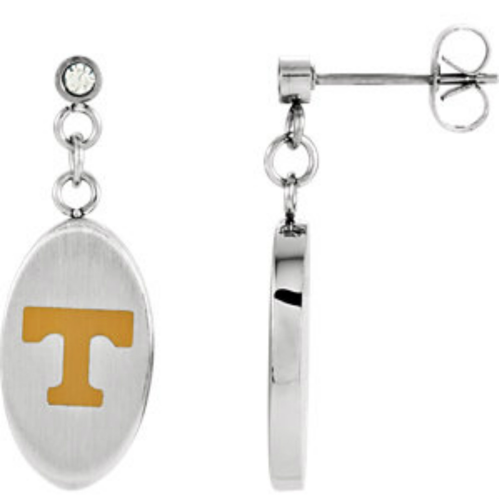Womens Stainless Steel and CZ Tennessee Volunteers NCAA Oval Dangle Earrings-650478-1006