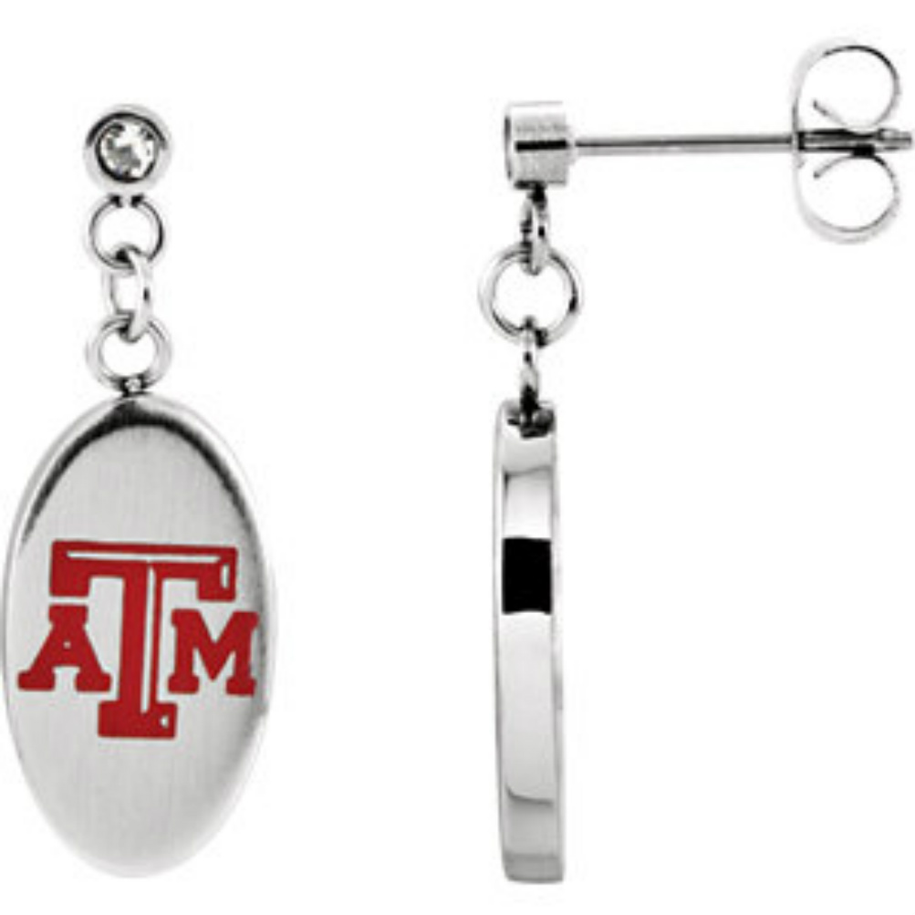 Womens Stainless Steel and CZ Texas A & M Aggies NCAA Oval Dangle Earrings-650463-1006