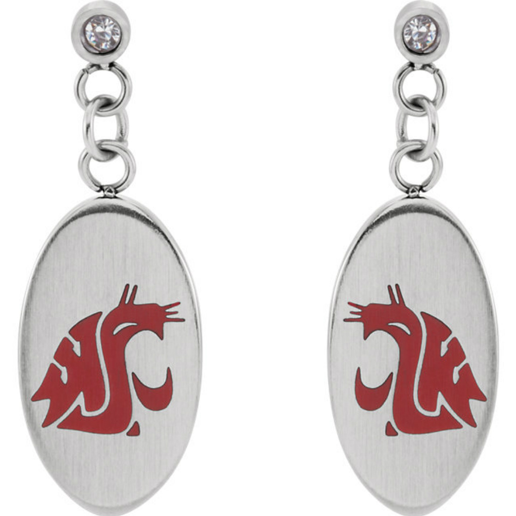 Womens Stainless Steel and CZ Washington State Cougars NCAA Oval Dangle Earrings-650469-1006