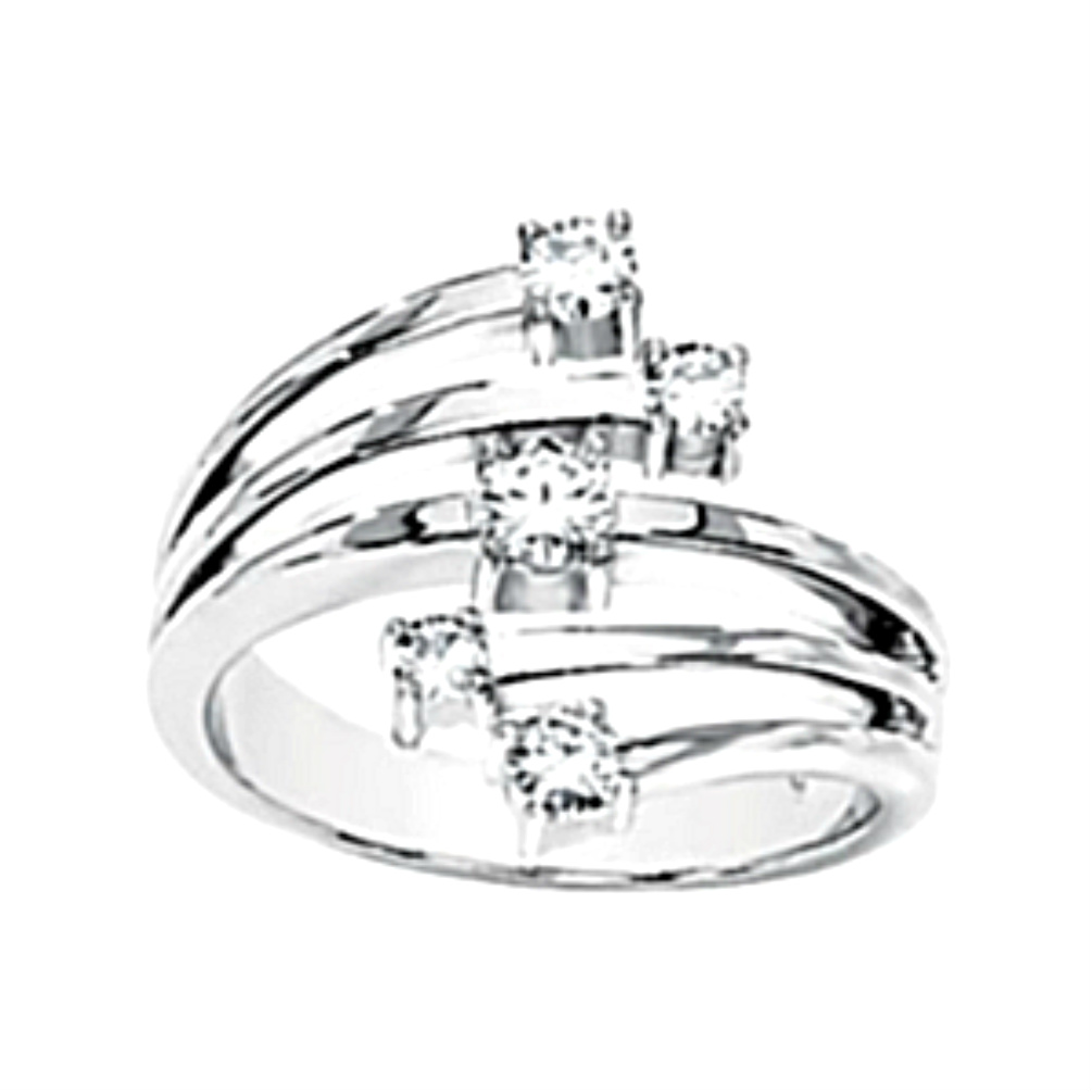 Charles & Colvard 5 Stone Moissanite Bypass 14k White Gold Fashion