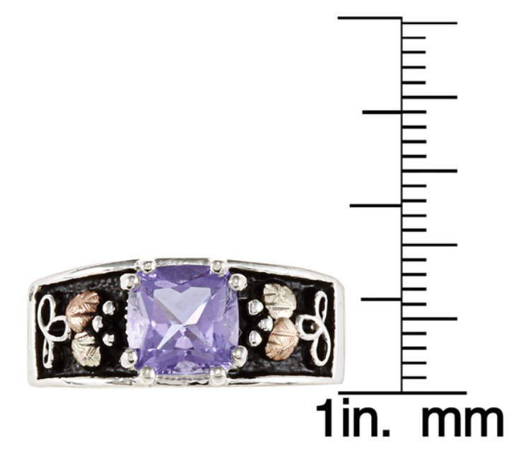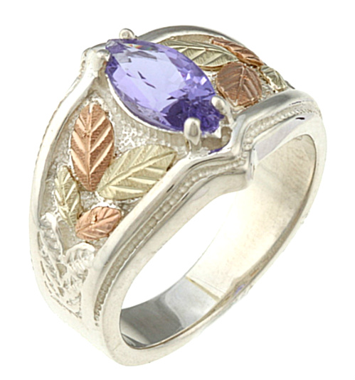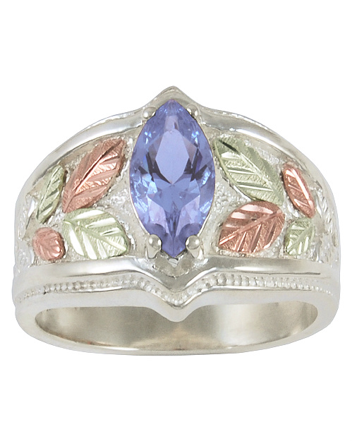 Sterling Silver Mt. St. Helen’s Blue-Violet Topaz Marquise Ring with 12k Rose and Green Black Hills Gold Motif