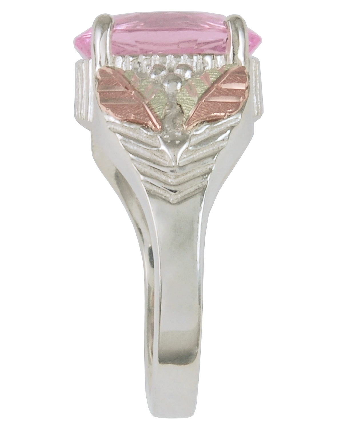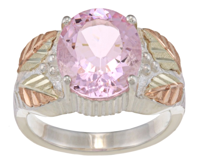 3.50 Ct. Pink St. Helenite Obsidinite Sterling Silver Ring with 12k Rose Gold and 12k Green Gold