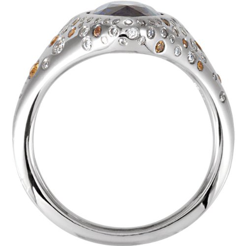 4.165 Cttw Platinum, London Blue Topaz Faceted Marquise, Diamond and Yellow Sapphire Ring, Innovation Winner Made in America