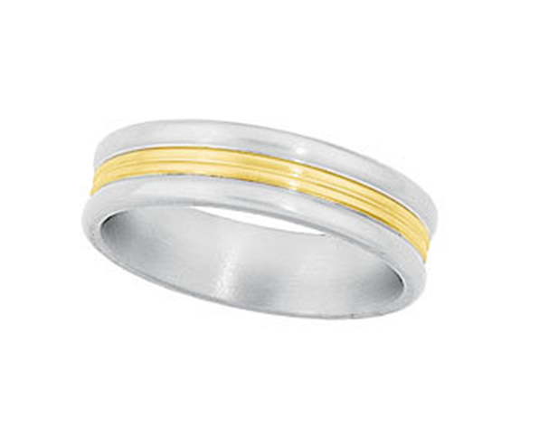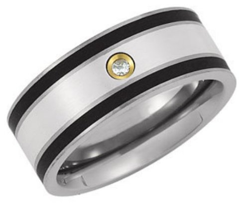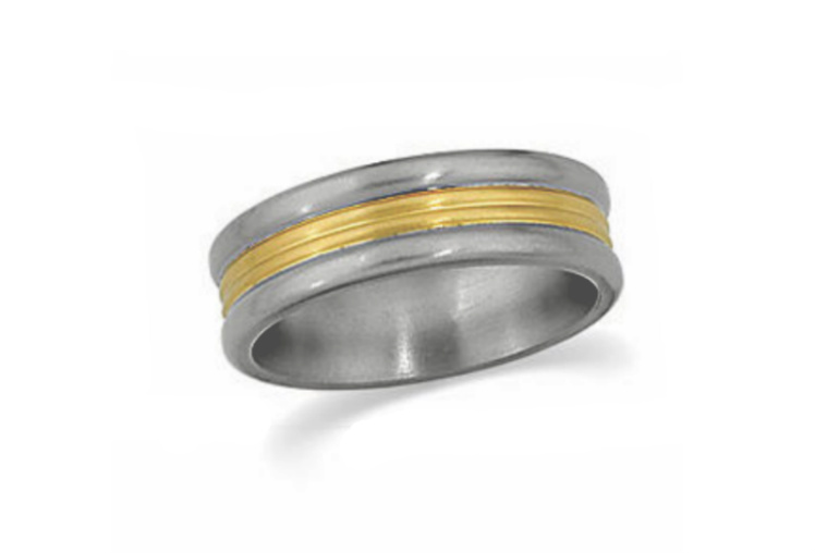 Titanium and 18k Yellow Gold wedding band.9 Millimeter titanium, sterling silver and 14k yellow gold comfort fit diamond ring.10 mm titanium domed band.Titanium Satin Brushed and Polished Cuff Links with bullet backs.Black and Gold IP Titanium Cross Bracelet