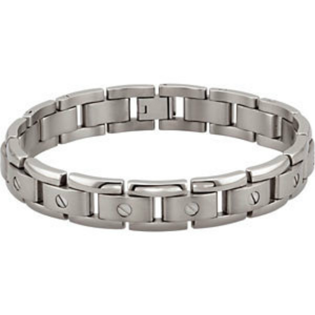 13 mm Titanium Satin and Polished Elegant Link Bracelet, 8.50 Inches (Can easily be resized)