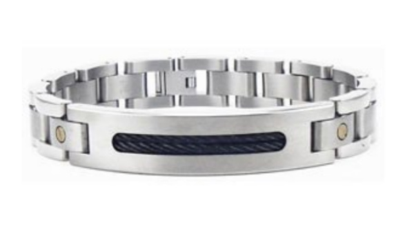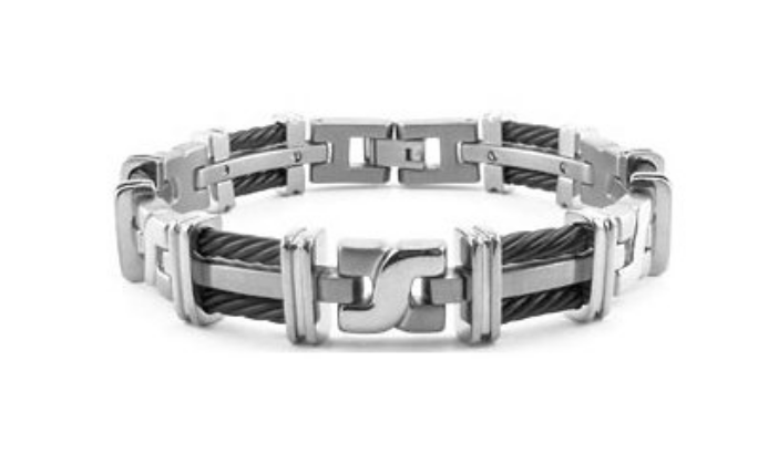 Two Tone Titanium Bracelet with BlTitanium 2-tone X Bracelet with Black Twisted Cable for men is gorgeous and 8.5 inches in length.ack Twisted Cable, 8.5 Inches