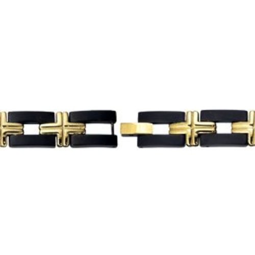 Black and Gold IP Titanium Cross Bracelet, 8.5″